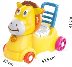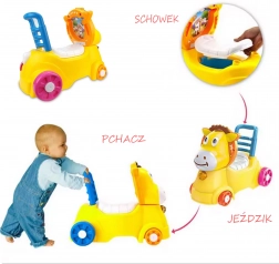 Roztomilý žltý somárik motivuje deti k pohybu, zlepšuje rovnováhu a koordináciu a podporuje samostatnosť. Vďaka praktickej rukoväti a stabilnému operadlu sa hodí ako na prvé krôčiky, tak na bezpečné odrážanie a jazdu po byte.