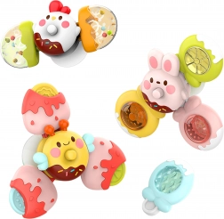 Hračky WOOPIE zmyslové spinnery oslnia každé dieťa. Tento set obsahuje 3 rôzne spinnery: včelu, kuriatko a králika, ktoré deti môžu vďaka gumovým prísavkám pripevniť k hladkému povrchu a zobrať ich kamkoľvek.