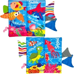 Látková knižka WOOPIE s morskou tematikou je ideálna prvá hračka pre bábätká od narodenia. Každá strana ponúka farebné ilustrácie a rôzne textúry, ktoré lákajú k dotyku. Vystúpené chvostiky rybičiek a ďalších morských tvorov pozývajú deti k uchopeniu a ťahaniu, čím prirodzene posilňujú jemnú motoriku a koordináciu.