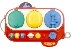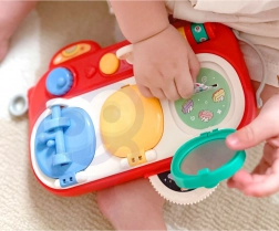 Vďaka robustnému prevedeniu a výrazným farbám je hračka ideálna pre zmyslové vnímanie aj rozvoj jemnej motoriky, koordinácie oko–ruka a kognitívnych zručností. Deti môžu stláčať, otáčať, posúvať a otvárať, čím trénujú trpezlivosť, sústredenie a riešenie problémov.