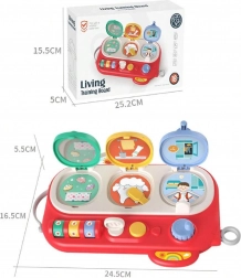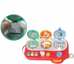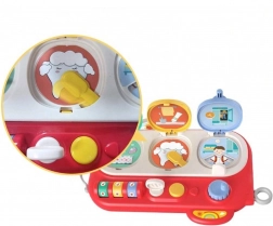 Pohyblivá kefka pri obrázku zúbka učí návyky hygieny, otočné pole s oblečkami rozvíja kreativitu a predstavivosť v každodenných situáciách.
