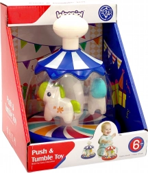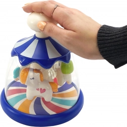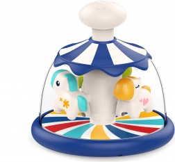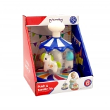 Veselý a farebný kolotoč s koníkmi od značky WOOPIE je dokonalá hračka, ktorá deťom poskytne nezabudnuteľné chvíle radosti a rozvoja. Po stlačení bieleho tlačidla začnú roztomilé zvieratká radostne krúžiť, čím vytvárajú efekt miniatúry skutočného kolotoča. Hračku je možné používať už od 6 mesiacov veku, čo z nej robí ideálny darček pre najmenších. WOOPIE je známe svojou vysokou kvalitou a bezpečnosťou svojich produktov, takže rodičia môžu byť pokojní, že kolotoč spĺňa všetky bezpečnostné normy.