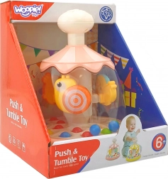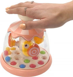Veľké horné tlačidlo je ideálne pre malé rúčky. Jediným stlačením sa roztočia zvieratká aj guľôčky a vznikne fascinujúci kolotoč.