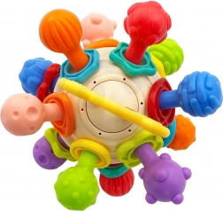 Farebná Rumba Guľa od značky WOOPIE je navrhnutá tak, aby uchvátila pozornosť detí a podporovala ich vývoj pomocou rôznych textúr a zvukových efektov. Hračka je ideálna pre deti od narodenia, kombinujúc funkcie hryzadla a hrkálky v jednom. Jej konštrukcia je pohodlná pre malé ručičky a bezpečná vďaka absencii ostrých hrán.