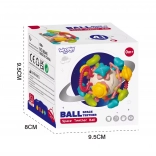 Vďaka kompaktnému tvaru sa guľôčka ľahko uchopuje, rozvíja jemnú motoriku a učí dieťa spoznávať tvary, farby a štruktúry. Odolné materiály bez ostrých hrán a možnosť ľahkého umývania z nej robia ideálnu voľbu na každodenné hranie doma aj na cestách.