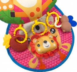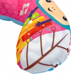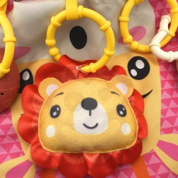 Šuštivé plôšky, kontrastné farby a textúry povzbudzujú pozornosť a sústredenie. Odnímateľné hrkálky a mäkké hryzátko uľavujú pri prerezávaní zúbkov a zároveň rozvíjajú úchop a jemnú motoriku. Kvalitné spracovanie a bezpečné materiály robia z vankúša skvelý darček pre novorodencov.