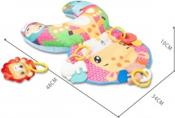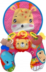 Interaktívny vankúš WOOPIE BABY s roztomilou potlačou žirafy rastie spolu s vaším dieťaťom. Poskytuje mäkkú a stabilnú oporu pri „pásení koníčkov“, pomáha trénovať hornú časť tela a koordináciu, a keď dieťa podrastie, podporí ho pri prvých pokusoch o sedenie. Vďaka odnímateľným hračkám si bábätko užije zmyslové objavovanie doma aj na cestách.