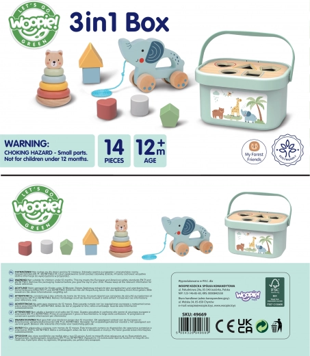 Objavte vzdelávaciu sadu 3 v 1 od WOOPIE GREEN – šikovné spojenie boxu so sortérom, pyramídky s medvedíkom a ťahacieho slona. Hračka je vyrobená z bezpečných materiálov, má zaoblené hrany a praktické uzatvárateľné veko s držadlom na ľahké prenášanie. Skvelé na rozvoj jemnej aj hrubej motoriky, učenie tvarov a farieb i koordinácie už od 12 mesiacov.