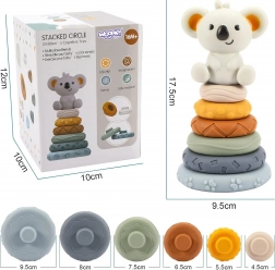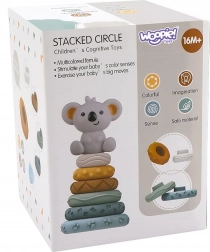 Deti môžu skladať podľa fantázie alebo podľa veľkosti krúžkov, čím si rozvíjajú rozpoznávanie tvarov a veľkostí, koncentráciu a trpezlivosť. Jemné pastelové farby a mäkká figúrka koaly robia z hračky atraktívneho spoločníka na každý deň.