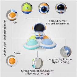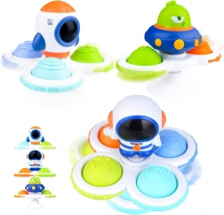 Objavte farebnú sadu troch senzorických spinnerov WOOPIE BABY s motívmi kozmonauta, rakety a mimozemšťana. Deti môžu spinnerom otáčať, stláčať silikónové tlačidlá s rôznymi textúrami a číslami a skúmať tvary aj farby. Silikónová prísavka zaistí pevné uchytenie na hladkých povrchoch, zatiaľ čo kvalitné ložiská umožnia dlhotrvajúce otáčanie. Ideálne od 18 mesiacov na rozvoj jemnej motoriky, zmyslovej stimulácie a koncentrácie.