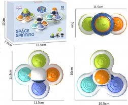 Sada troch kozmických spinnerov WOOPIE BABY spája zábavu a učenie v jednom. Každý spinner ponúka iné usporiadanie ramien so gumovými tlačidlami, odlišné textúry a farby pre bohatú zmyslovú stimuláciu. Vďaka silikónovej prísavke ich ľahko pripevníte na okno, zrkadlo, dlaždice alebo stôl – doma aj pri kúpaní.