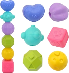 Vkladacie tvary so skrytými rolničkami motivujú k opakovanému skúšaniu. Podporujú rozpoznávanie tvarov a farieb a posilňujú koordináciu oko–ruka.
