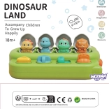 Rôznorodé ovládacie prvky a hrkajúce oko dinosaura rozvíjajú jemnú motoriku, hmat aj sluchové vnímanie.
