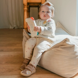 Svietiace „slnko“ a hudobné tlačidlá podnecujú zrak aj sluch, vďaka čomu dieťa lepšie vníma farby, rytmus a príčinu–následok.