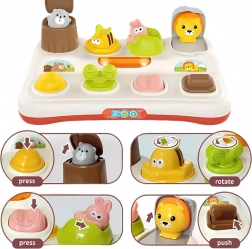 Detská edukačná hračka Zvieratká ZOO Pop Up od značky Woopie spája učenie a zábavu pre malých objaviteľov. Aktiváciou prepínača, gombíka alebo tlačidiel sa vykloní zvieratko! Táto interaktívna hračka je dobre vyrobená, vysoko odolná a nie je ľahké ju poškodiť. Je to skvelý darček na rôzne príležitosti, ktorý nielen prináša radosť, ale tiež pomáha rozvíjať motorické zručnosti a pochopenie príčinných súvislostí.