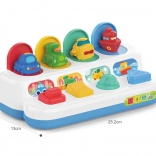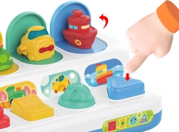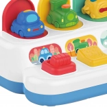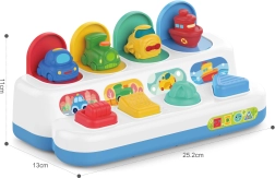 Táto odolná a precízne spracovaná interaktívna hračka s pop‑up mechanizmom prináša deťom od 18 mesiacov nekonečnú porciu zábavy aj učenia. Farebné vozidlá sa po aktivácii rôznymi ovládacími prvkami vynoria, čím dieťa okamžite odmenia a podporujú opakované skúšanie.