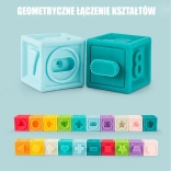 Súprava obsahuje 20 kociek v jemne ladených farbách, ktoré možno ľahko skladať a vzájomne prepájať. Podporuje vizuálno-sluchovú koordináciu, rozvoj motoriky, zrakové vnímanie aj logické myslenie. Číselné a matematické symboly navyše prirodzene vedú k učeniu počítania a jednoduchým úlohám.