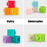 Senzorické kocky Woopie Baby prinášajú deťom bezpečnú hru plnú podnetov – od pískania pri stlačení, cez rôzne povrchy, až po reliéfy s číslami a zvieratkami. Vďaka mäkkému materiálu sú šetrné k detským ďasnám a skvele sa držia aj tým najmenším.