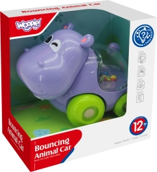 Woopie Auto Hrkáčik v tvare rozkošného hrocha! Táto jedinečná hračka stimuluje aktivitu dieťaťa a zároveň rozvíja jeho zmysly. Pri pohybe hrkálika sa v brušku hrocha začnú farebné guličky šúchať a otáčať, poskytujúc tak zvukové, ako aj vizuálne podnety.