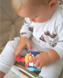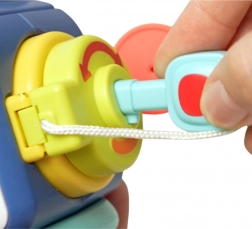 - Podporuje rozvoj motorických zručností prostredníctvom uchopenia, ťahania, otáčania a stláčania rôznych častí