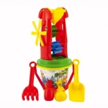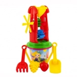 Táto pestrá súprava do piesku je ideálna na dovolenku, výlety aj každodennú zábavu na ihrisku. Deti môžu sypať piesok do mlynčeka a pozorovať otáčajúce sa lopatky, stavať hrady a vytvárať tvary pomocou formičiek. Odolné spracovanie z kvalitného plastu zaručí dlhú životnosť a bezpečnú hru.