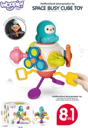 - 8 v 1 (rotujúci astronaut, navíjací mechanizmus/„hryzátko“, spinner, naťahovací návrat, volant so zvukmi, kľúč do otvoru, posuvná loď, tlačidlo so zvukom)