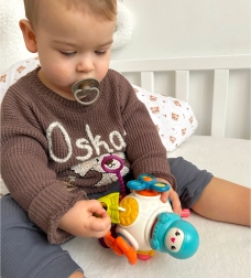 Rotujúci astronaut, spinner, posuvné a stláčacie prvky udržiavajú pozornosť dieťaťa a podporujú prirodzené učenie hrou.