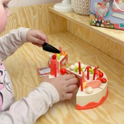 Narodeninová torta Woopie je perfektnou hrou ako pre malé hostiteľky, tak pre hostiteľov. Sada obsahuje 40 rôznych dielov, vrátane sviečky, ktorá sa rozsvieti po stlačení tlačidla. Deti môžu pri hre rozvíjať svoju kreativitu a predstavivosť vďaka možnosti samostatného zdobenia torty sviečkami, zajačikovými dekoráciami a ovocím.