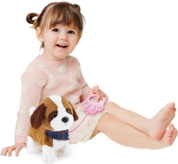 Tento interaktívny plyšový psík prináša deťom veľa zábavy vďaka kombinácii pohybu a zvukových efektov. Po pripojení kábla s ovládačom do otvoru na krku reaguje na rôzne podnety: po stlačení vodítka sa rozchádza, na dotyk hlavy spúšťa efekty a po zatlieskaní sa znovu vydá na prechádzku. Mäkké prevedenie z neho robí ideálnu hračku na každodenné hranie.