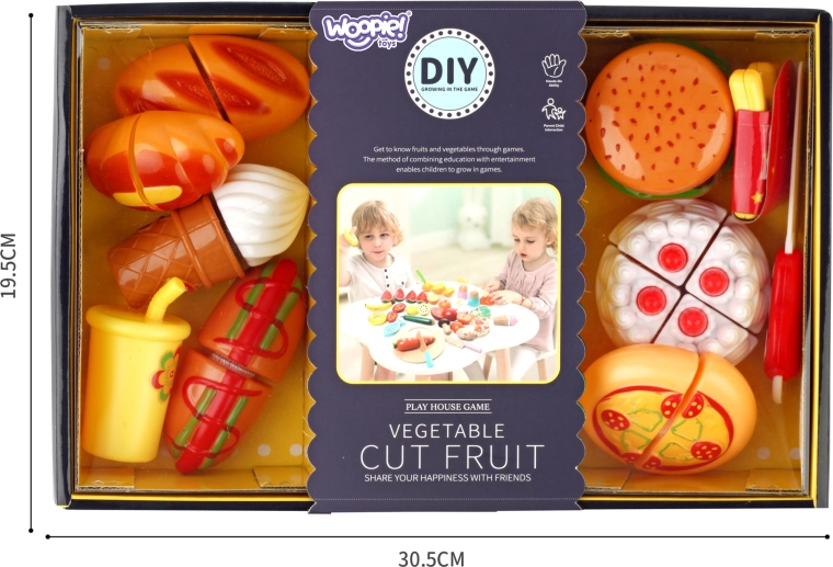 Ovocie na krájanie s doskou je ideálne pre školky i domáce použitie. Sada obsahuje 8 ovocných polovíc, ktoré môžete spojiť pomocou suchých zipsov, bezpečný neostrý nôž a krájacie prkénko. Táto hračka rozvíja jemnú motoriku, ktorá je základom pre celkovú zručnosť.