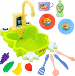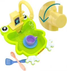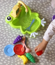 Drez Žabka je skvelá interaktívna hračka, ktorá premení každodenné kuchynské činnosti na zábavnú hru. Reálny kohútik s ciruláciou vody po naliatí vody do drezu a vložení batérií napodobňuje skutočné umývanie riadu a ovocia. Vďaka roztomilému žabiemu dizajnu deti hra okamžite zaujme a motivuje k objavovaniu.