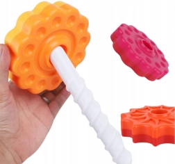 Špirálová veža WOOPIE je vyrobená z farebných prvkov, ktoré sú umiestnené na tyči a skrutkované dole. Táto hračka je navrhnutá tak, aby bola trvácna a bezpečná, čo zaručuje dlhé hodiny zábavy pre vaše dieťa. Sada obsahuje 6 krúžkov a základňu v rôznych farbách a tvaroch, čo umožňuje stavať vežu rôznymi spôsobmi. Stavanie pyramídy podporuje logické myslenie a plánovanie ďalších krokov.
