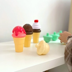 Sada na výrobu zmrzliny rozvíja detskú fantáziu a kreativitu, keď dieťa môže prevziať rolu cukrára a zákazníka. Obsahuje všetky diely potrebné pre vytvorenie dokonalého zmrzlinového zážitku. Dieťa si vezme kornútok, naberie kopček zmrzliny a skladá ho podľa vlastnej tvorivosti.