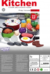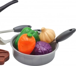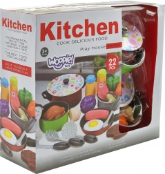Objavte pestrý kuchynský set pre deti od 3 rokov, ktorý ponúka až 22 dielov na realistické varenie. Farebné hrnce, panvice a náradie dopĺňajú plastové potraviny pre kreatívnu hru. Bezpečné prevedenie bez ostrých hrán, kvalitné spracovanie a štýlové balenie poteší každého malého kuchára.