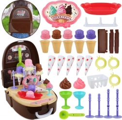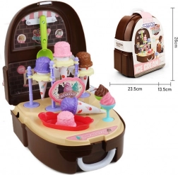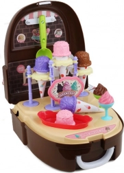 Malý cukrár vždy pripravený! Tento rozkošný set v podobe batôžka sa po otvorení premení na kompletnú zmrzlináreň a mini obchodík. Deti môžu servírovať kopčekovú zmrzlinu, plniť kornútky a predávať sladké maškrty kamarátom aj rodičom. Vďaka ľahkej konštrukcii si ho jednoducho vezmú na ihrisko, k babičke alebo na dovolenku.