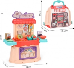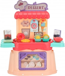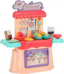 Súčasťou sú zmrzliny, donuty, cukrovinky, misky, krabičky a ďalšie doplnky pre realistickú hru na obchod a cukráreň.