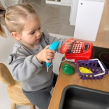 - Realistická hra na obchod – skener so zvukmi, číslicová klávesnica a platobné doplnky.