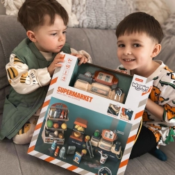 S touto realistickou sadou supermarketu si deti vyskúšajú rolu predavača aj zákazníka. Pokladňa so skenerom, funkčnou zásuvkou na peniaze a papierovými bankovkami a mincami učí základom finančnej gramotnosti a sociálnej interakcii. Súčasťou je tiež váha a bohatá ponuka potravín.