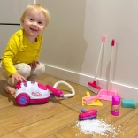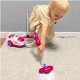 Ružový vysávač s realistickými detailmi, ako sú tlačidlá, poskytuje deťom pocit skutočného upratovania.