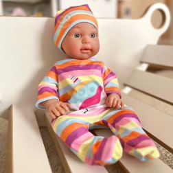 Pruhované body s hravým motívom jednorožca dodá bábike osobitý štýl a podporí radosť z hry.