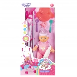V sade nájdete lyžičku, vidličku, cumlík, tanierik a fľašku, čo umožňuje simulovať kŕmenie bábätka.