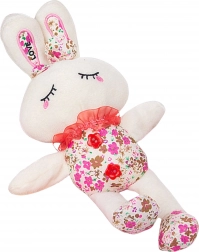 Súčasťou balenia je fľaštička, cumlík, plyšový zajačik a plienka – všetko pre kompletnú hru na bábätko doma aj na cestách.