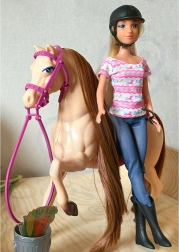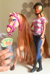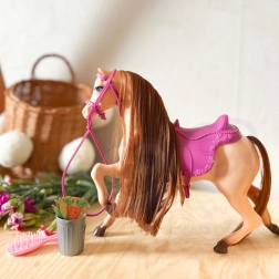 Bábika i kôň majú dlhé, husté vlasy, ktoré ponúkajú neobmedzené možnosti pre tvorbu účesov a stylingu.