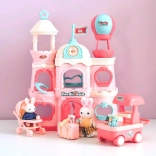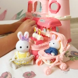 Deti vytvárajú vlastné príbehy s králičkami, psíkom a doplnkami ako kočík či vozík so zmrzlinou – ideálne pre kreatívnu hru.