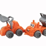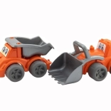 Zábavná sada dvoch plastových stavebných vozidiel poteší každého malého staviteľa. Obsahuje nakladač a auto s korbou, obe na voľnobeh, vyrobené z odolného plastu. Ideálne ako darček pre deti od 12 mesiacov.