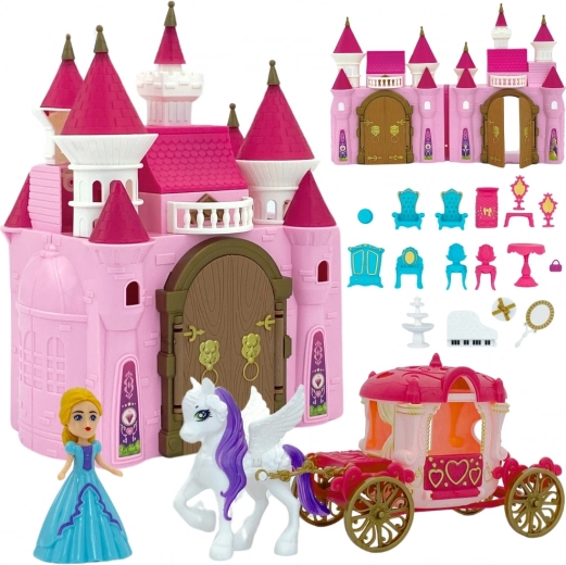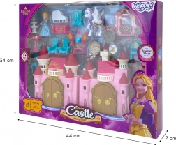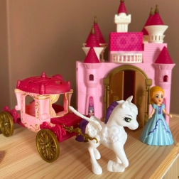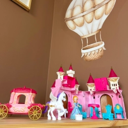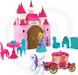 Úžasný interaktívny rozprávkový palác s princeznou od značky WOOPIE prenesie vaše dieťa do sveta princezien a kúziel. Súprava pozostáva z nádherného ružového skladacieho paláca a nábytku, ktorý dokonale zapadá do elegantného interiéru. Figúrka princeznej má krásne blond vlasy a večernú róbu - určite očarí vaše dieťa! Súčasťou je tiež rozkošný koník pegaz, ktorý ťahá ružový koč. Palác je interaktívny - má funkciu svetla a hudby.