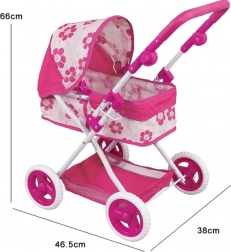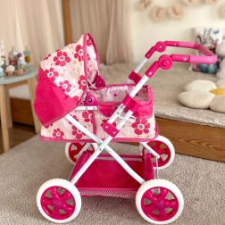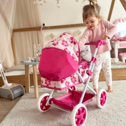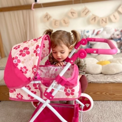 Štýlový a funkčný hlboký kočík pre bábiky od značky WOOPIE je ideálnym doplnkom pre každú malú milovníčku hry s bábikami! Kočík je vybavený kvetinovým vzorom a nastaviteľnou rukoväťou, vďaka čomu „rastie“ spolu s dieťaťom. Jeho tiché kolieska zabezpečujú hladké riadenie a stabilná konštrukcia bezpečnú hru.