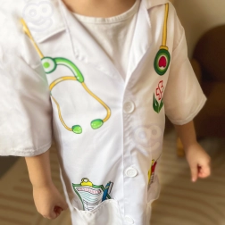 Kostým dokonale napodobňuje reálny lekársky plášť so všetkými detailmi.