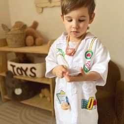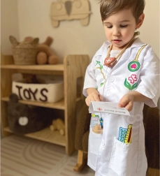 Tento precízn py spravený lekársky kostým od Woopie poskytuje malým milovníkom medicíny perfektné vybavenie pre ich imaginatívne hry. Obsahuje farebné potisky nástrojov ako je stetoskop, lieky a teplomer. Vďaka voľným vreckám je ideálny pre skladovanie ďalších herných predmetov.