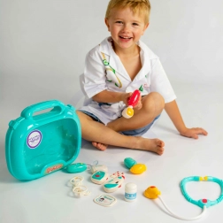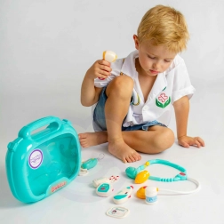 To všetko je uložené v pohodlnom kufríku s rukoväťou, čo zaručuje jednoduché prenášanie. Dieťa môže rozvíjať svoju fantáziu a hrať sa na doktora alebo pacienta!